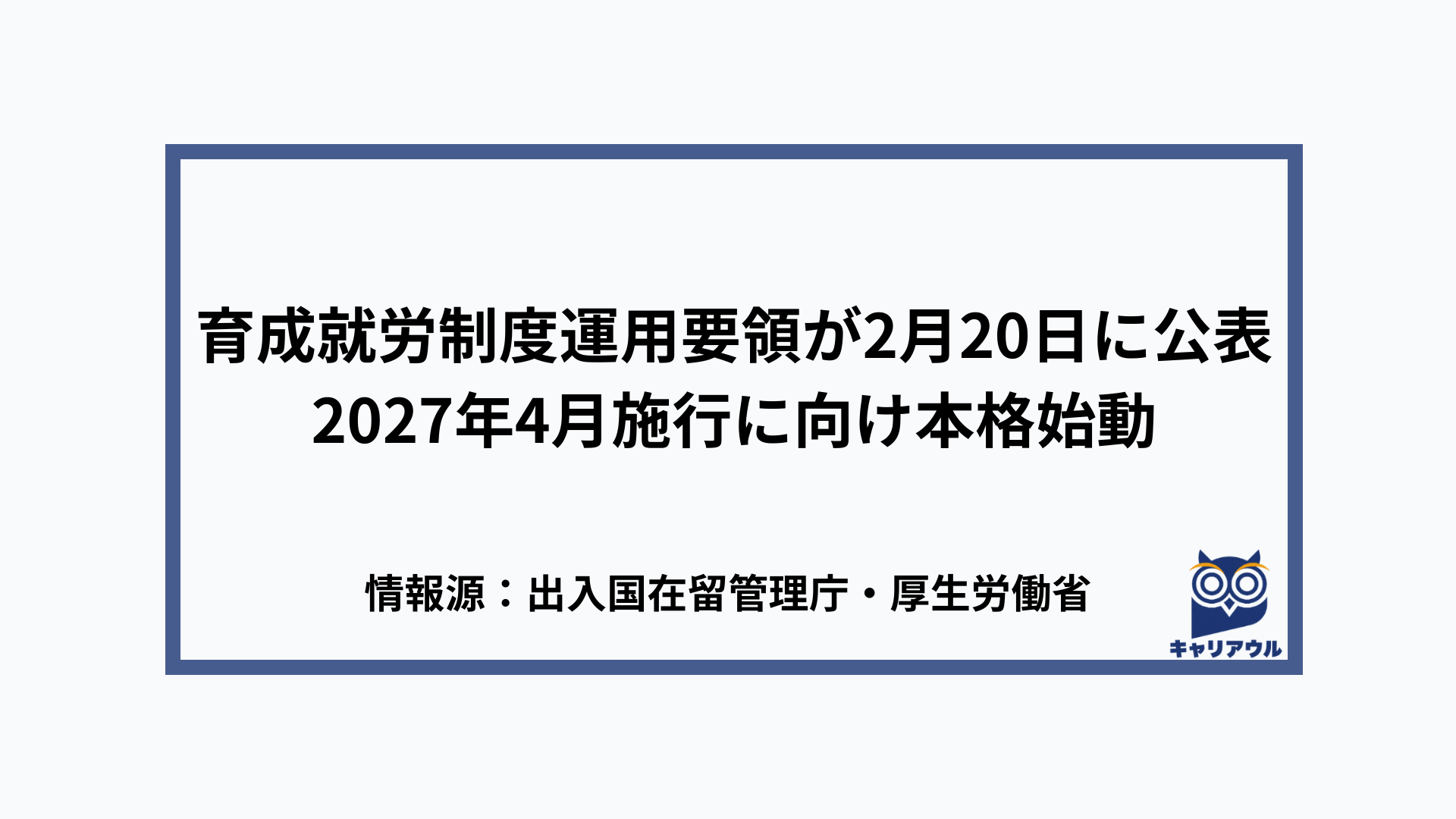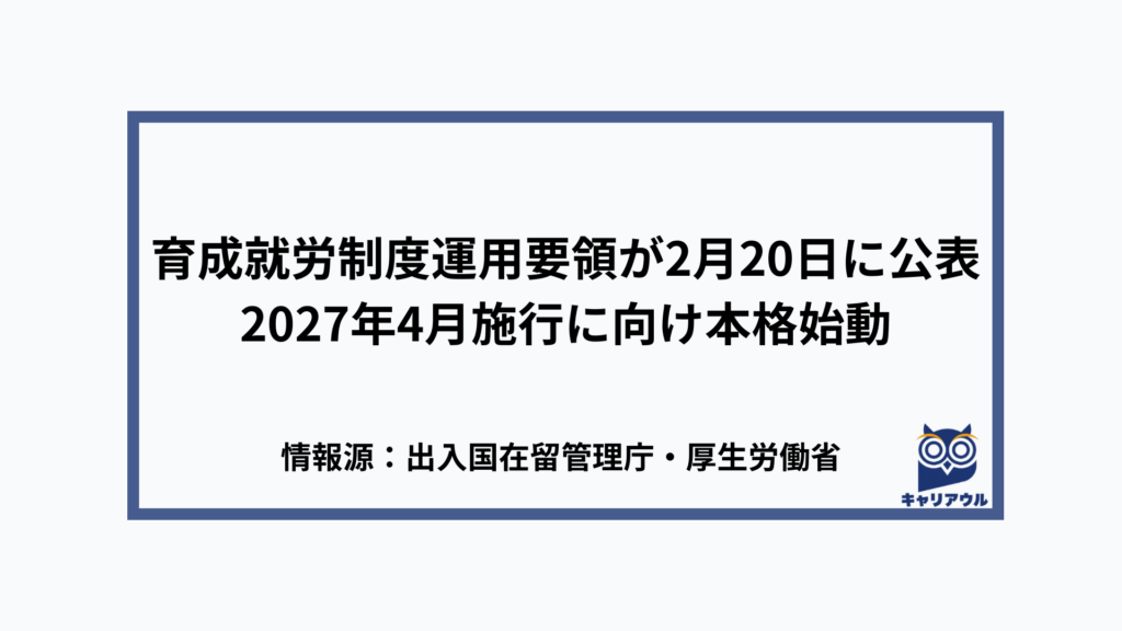 育成就労制度運用要領が2月20日に公表、2027年4月施行に向け本格始動
