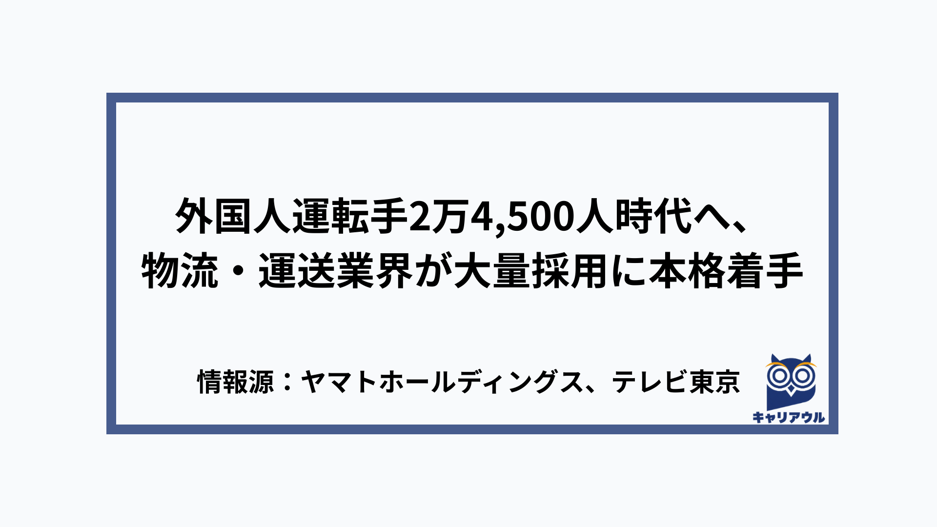 外国人運転手2万4,500人時代へ、物流・運送業界が大量採用に本格着手
