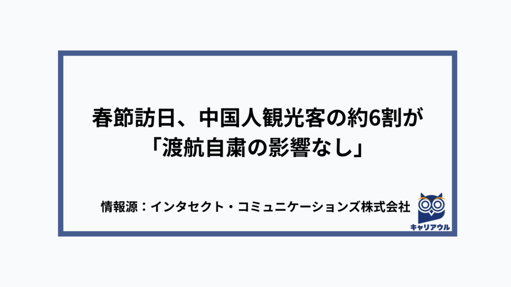 春節訪日、中国人観光客の約6割が「渡航自粛の影響なし」