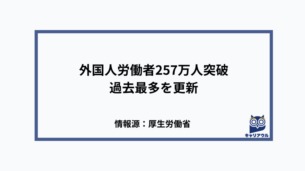 外国人労働者257万人突破、過去最多を更新